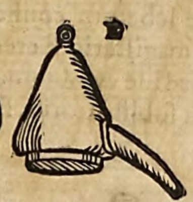 E) Pileus seu campana rostrata potissimum ex plumbo candido aut aere stannato: gorro o campana con pico de estaño o de cobre estañado.