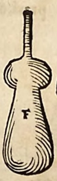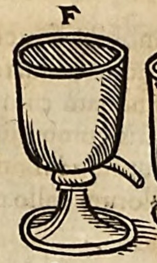 F) Alembicus sublimatorius turritus cum foramine exploratorio vértice: alambique sublimatorio en forma de torre con un orificio en el vértice.
