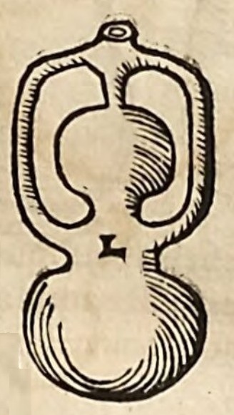 9.-Circulatorium (LIBAVIO (1606), p. 175): Circulatorio, Pelícano, o Vaso de Hermes. Es un recipiente de vidrio en el cual se introduce un líquido cuyo vapor, ascendiendo y descendiendo, es sometido a un movimiento casi circular.