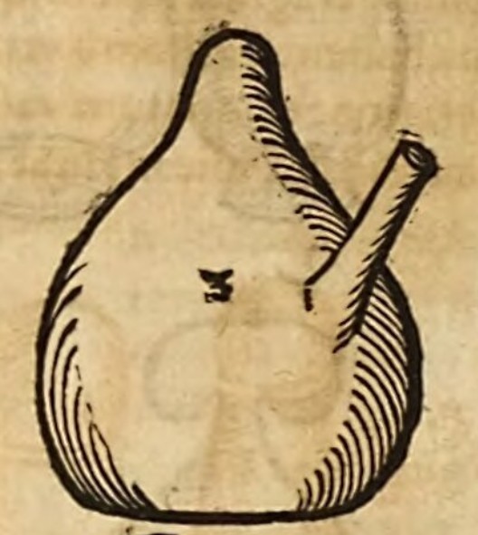 A) Cucurvita cum fundo vesicae ad digerendum: cucúrbita con fondo de vejiga para la digestión.