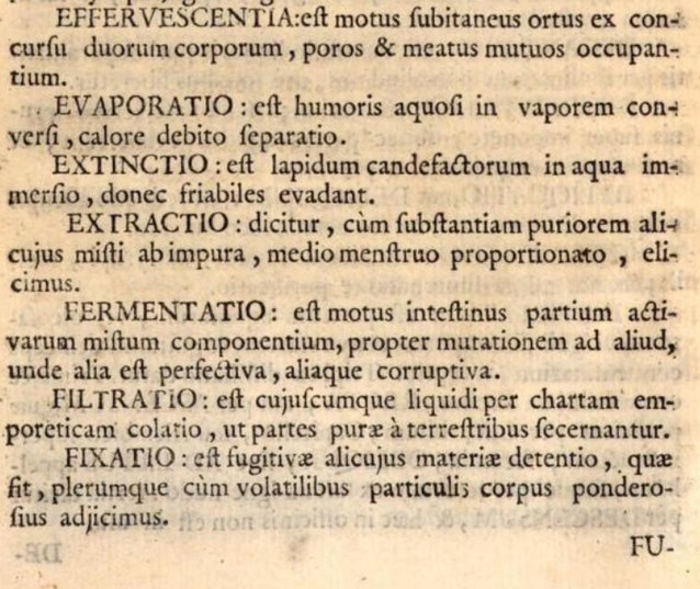 32) Evaporatio: evaporación es la separación de los humores acuosos de un cuerpo por su conversión en vapor debido a la acción del calor.