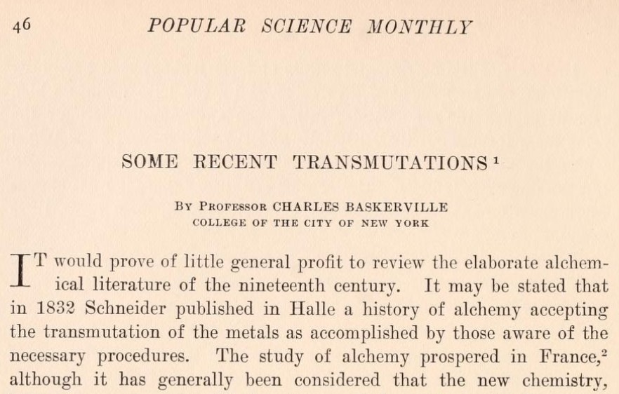 [7] Baskerville, C., “Some Recent Transmutations”, Popular Science Monthly 72:1 (Enero 1908), 46–51, aquí 48.