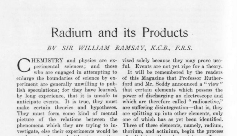 [9] Ramsay, W., “Radium and Its Products.” Harpers (December 1904): 52–57, aquí 54.