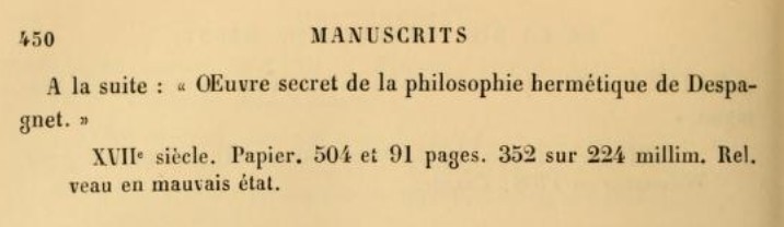 Catalogue des manuscrits de la Bibliothéque Mazarine, Paris, Plon, 1892, vol. III, 160: