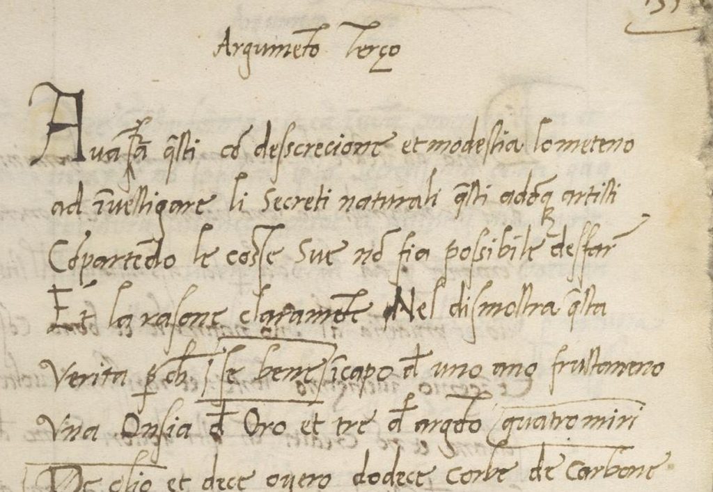 Manuscrito en papel, 208 x 148 mm. 39 páginas. Siglo XVI (1576). En italiano.