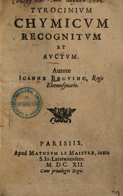 Jean Beguin, Tyrocinium chymicum recognitum et auctum, Paris, Matheus le Maistre, 1612