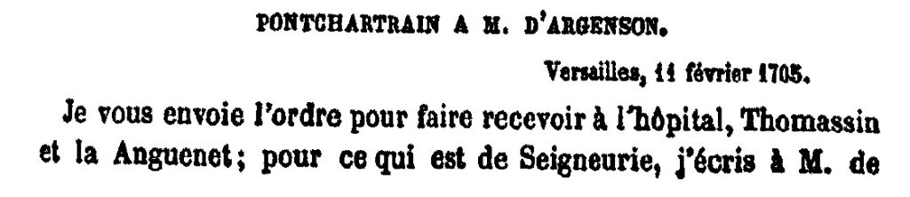 PONTCHARTRAIN A M. D’ARGENSON. Versailles, 11 février 1705.