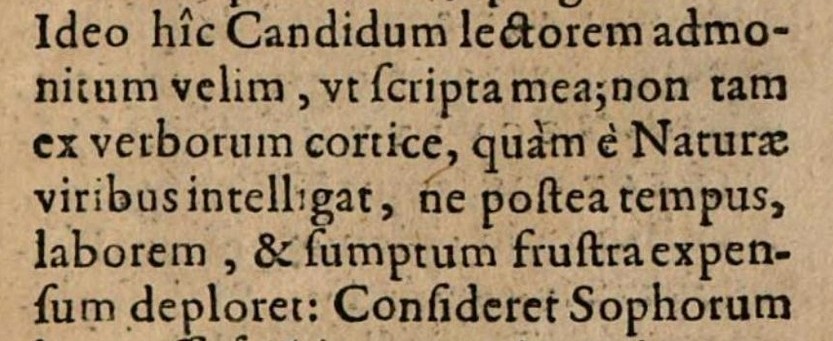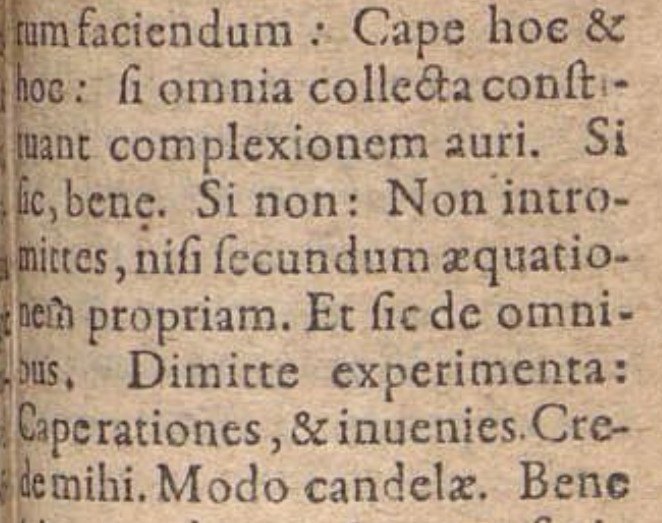 [8] Sendivogius, M., Novum Lumen Chymicum e naturae fonte et manuali exoerientia depromptum…, Genevae, S. de Tournes, 1628, Praefatio, 7: “Ideo hîc Candidum lectorem admonitum velim, ut scripta mea, non tam ex verborum cortice, quàm é Nature viribus intelligat, ne postea tempus, laborem, & sumptum frustra expesum deploret”.
