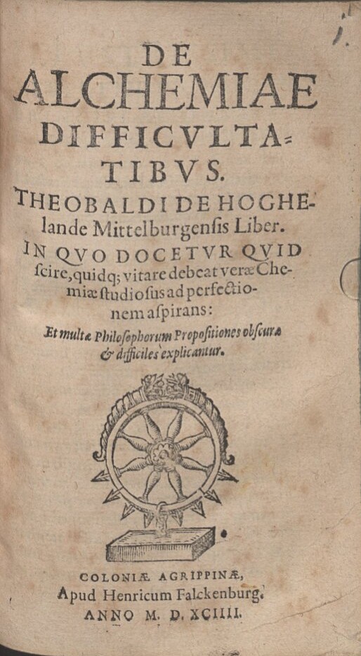 [2] Se refiere al alquimista holandés Theobald von Hoghelande (1560-1608). Hoghelande, Th. de., De alchemiae difficvltatibvs Theobaldi de Hoghelande Mittelburgensis Liber. In qvo docetvr qvid scire, quidq; vitare debeat veræ Chemiæ studiosus ad perfectionem aspirans: Et multæ Philosophorum Propositiones obscuræ & difficiles explicantur, Coloniae Agrippinae, apud Henricum Falckenburg, 1594. Sylvain Matton, S., “Cartésianisme et alchimie”, en Aspects de la tradition alchimique au XVIIeme siècle. Milán, Archè, 1998, p.111, n.3 (biografía de Theobald van Hoghelande).