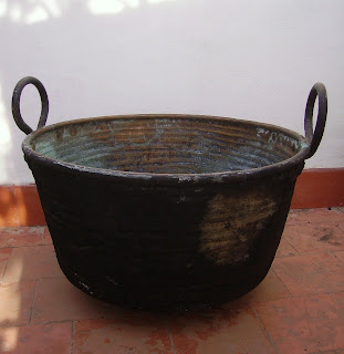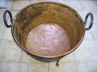 Los objetos de cobre se limpian con sal gorda y vinagre, se frotan hasta eliminar las manchas negras y azules con un estropajo y luego se untan con una fina capa de aceite para conservar un poco de tiempo el color del cobre. De todas formas, enseguida se ponen negros otra vez. Las calderas de la matanza se limpiaban sólo cuando iba a realizarse ésta.