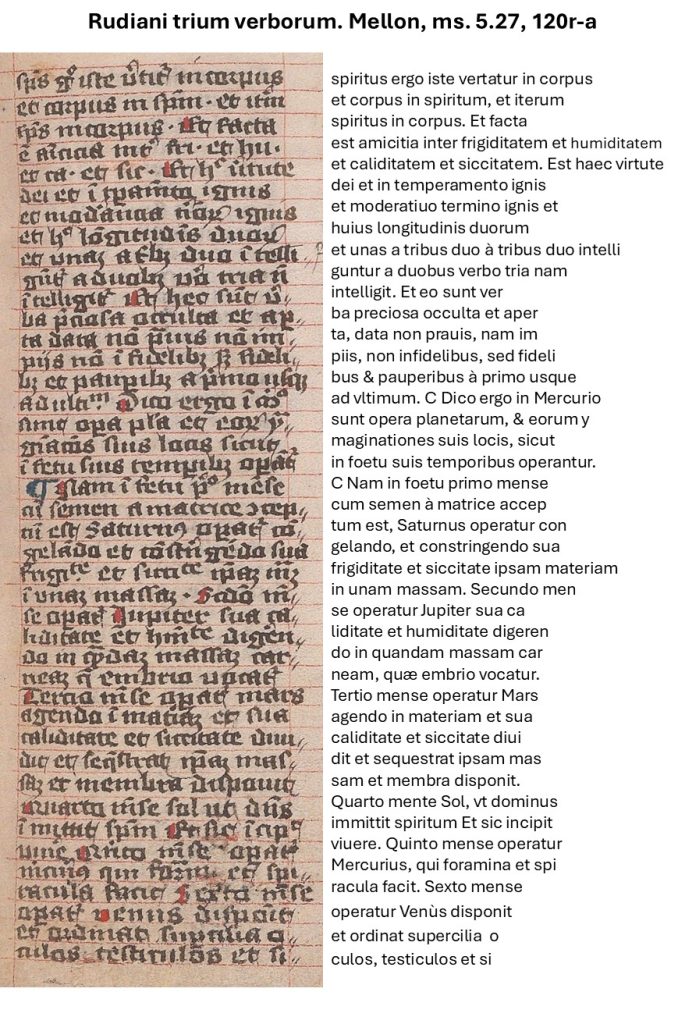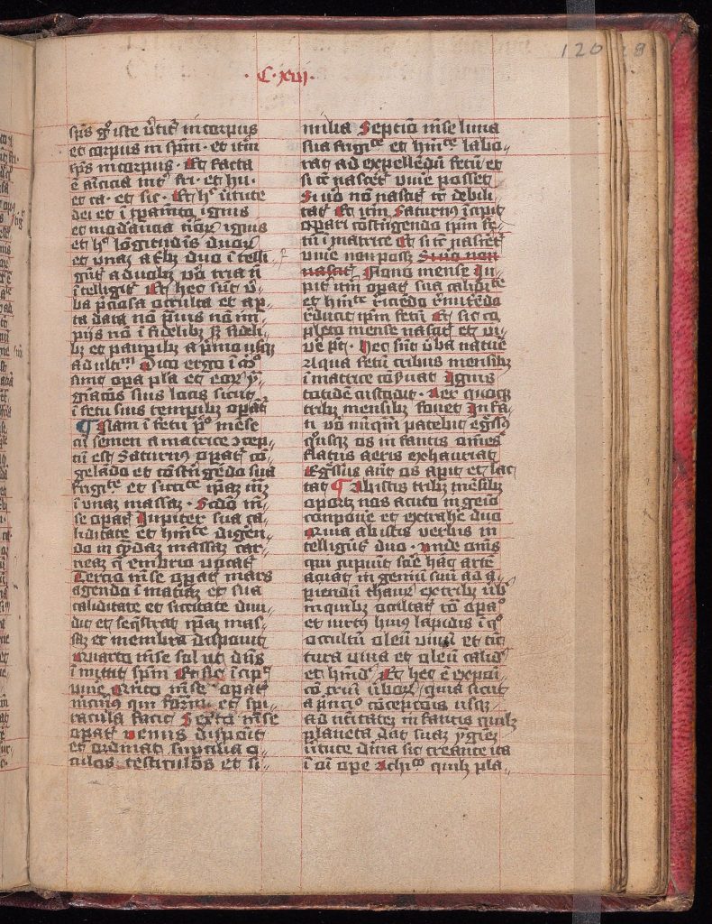 Códice de pergamino en latín, 165 x 117 mm, 136 páginas, que constan de 3 página no numeradas, 123 foliadas correctamente (i-Cxxiij) , pero omitiendo media hoja que pertenece a la colación que ocurre después de f. Cxxj, más 9 páginas no numeradas. Colación: (1)^^10, (2-6)^^8, (7)^^10, (8-14)^^8, (15-16)^^10, f. 125 es media hoja. En la descripción siguiente, se cita primero el número de folio correcto, después la foliación original entre paréntesis cuando corresponda. Sin firmas. Palabras clave al final de los cuadernillos o resmas, excepto en el sexto, séptimo y decimotercero. Se observa foliación en la parte superior central, anverso, de cada hoja, excepto f. 1, sin regla y sirviendo de guarda, y fols. 2-3, que están rayados para música y texto en líneas largas, cada página está rayada con mucho cuidado en tinta roja en dos columnas de 40 líneas cada una, espacio escrito de 124 x 98 mm. Agujeros totalmente conservados en muchas hojas. Escrito en rojo y negro en gótica textual por una mano bastante cuidadosa pero mal formada, son llamativas las diferentes formas de letras, con anotaciones de una letra cursiva de finales del siglo XV y notas ocasionales de otras manos del mismo período. Capitales importantes pintadas de rojo y azul con decoración ocasional filiforme, rubricada y capiteles frecuentemente pintados de rojo, pero sin otro adorno o ilustración. Casi ninguna corrección, con abreviatura estándar moderada. Pergamino de calidad mediocre y palimpsesto, a veces con rastros de escritura en lo que parece ser una gótica cuadrada, probablemente en dos columnas en hojas de tamaño folio, tal vez de poco menos de un siglo más antiguo que los escritos posteriores. El pergamino ha provocado algunos agujeros, abrasiones y desgarros en el material.