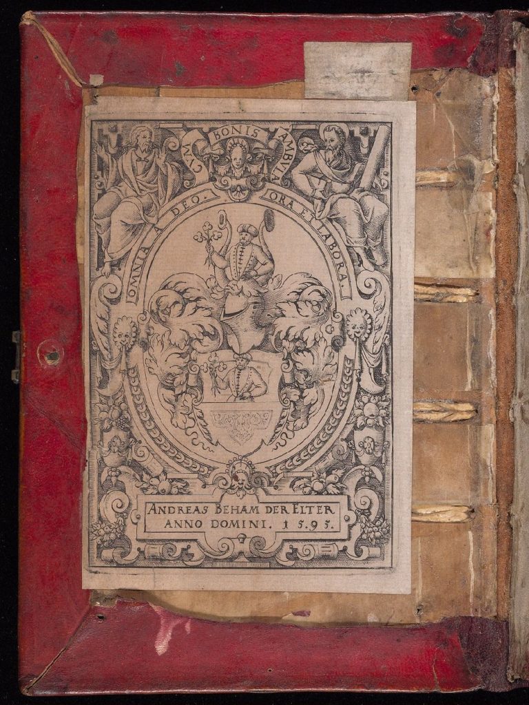 PROCEDENCIA: Probablemente escrito por un copista no identificado para uso personal; Henricus, siglo XV, escrito en pasta frontal, posiblemente uno de los primeros propietarios o lector; Andreas Beham der Elter (es decir, el Viejo; de Nuremberg), con su ex-libris de armadura grabado y fechado en 1595, en el interior de la portada, cf. Warnecke, Die deutschen Buecherzeichen, Berlín, 1890, pág. 33, núm. 158, quien cuestionó la atribución de la placa a Hans Sibmacher; caucho germánico (?) sello, ca. 1900, borrado de la primera y última hoja y no se lee. Escuela Secundaria Mellon S=156, adquirido de The Rosenbach Co. (libreros), Nueva York. De Ricci-Bond 33.